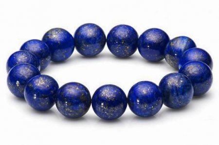 Перед нами ювелирное украшение, выполненное из круглых бусин. Его основу составляет фурнитура из натурального камня – лазурита с мельчайшими вкраплениями золотистого пирита. Браслет предполагает ношение на запястье. Преобладающий в изделии цвет – синий. Теперь классифицируем его основные характеристики, делая пометки в графах: