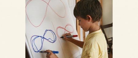 6. «Двойной рисунок» очень нравится детям. Нужно взять в обе руки по карандашу и рисовать одновременно одинаковые буквы, цифры, фигуры. Можно просто рисовать двумя руками, не зацикливаясь на рисунке. При выполнении привычного движения «неудобной» рукой активизирует новые участки мозга.