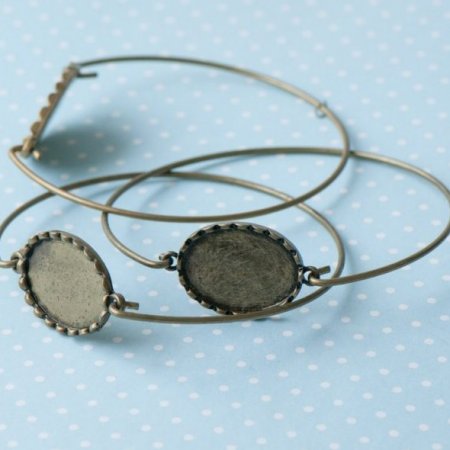 Такие металлические основы для формирования браслетов предусматривают уже готовое размещение специальных площадок (сеттингов), куда при помощи клеящей эпоксидной смолы будут крепиться винтажные камеи, кабошоны, стразы и самоцветы. Изготовленная вручную бижутерия «под старину» подчеркнет особый шарм и безупречный вкус мастерицы.