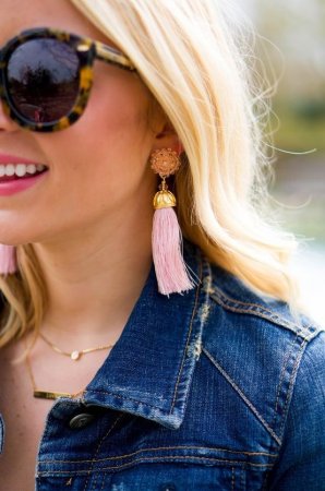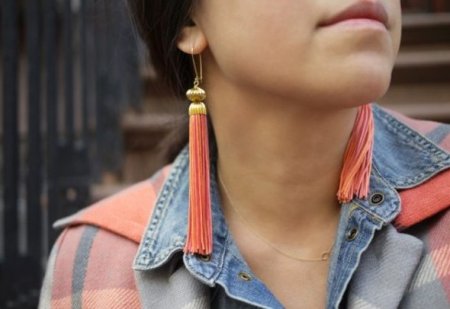 Невероятно стильно и жизнерадостно выглядят серьги-кисточки, сочетающие в себе сразу несколько цветов. Акцент в этом случае делается на украшения, а одежда лишь дополняет и завершает образ.