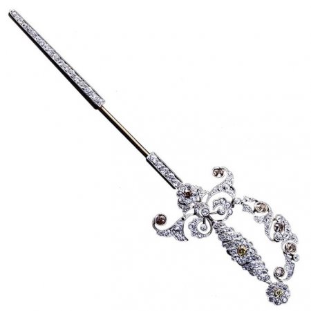 jabot pin состоит из двух отдельных декоративных элементов, соединенных с помощью штифта.