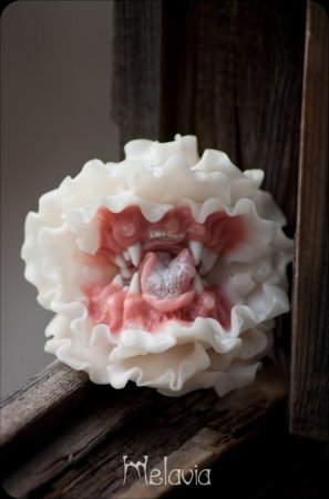 Меня попросили сделать цветок с зубами по мотивам одного из многочисленных художников, рисующих сюрреалистические картины. Я согласилась, тем более что качественного продукта из полимерной глины в этой области еще не было – только сухие эскизы, рисунки и несколько работ из ткани и силиконов от различных дизайнеров. Процесс меня захватил и образовалась аудитория, которой очень понравились такие цветы. Постепенно становилось все больше форм, цветовых палитр и не типичных для растительности включений в работы.