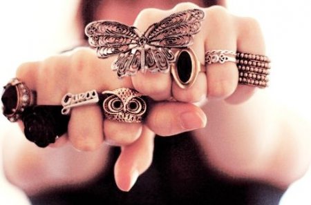 Другое дело – яркие, необычные и желательно очень большие кольца. Приветствуются эксперименты по сочетанию материалов, фактур, сложные формы. Традиционные кольца на палец можно носить вперемешку с диковинными украшениями на ногте или верхней фаланге, сдвоенными или строенными. Устарел совет стилистов о том, что нужно подбирать кольца в одной цветовой гамме, из одного материала. Тут тоже полная свобода, правда, все украшения должно что-то объединять – общая идея, стилистика, форма.