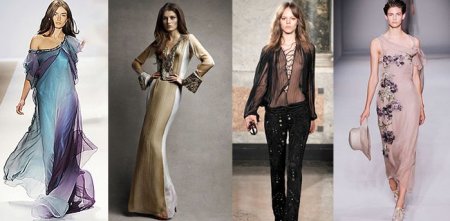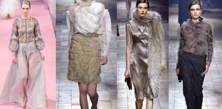 По форме и фасону преобладает вертикаль, именно она дает ощущение хрупкости. Романтики выбирают сложные формы: асимметричные фасоны, драпировки, обилие ткани, многослойность, шнуровки. Даже в офис они умудряются под пиджак надеть струящуюся шелковую блузку приглушенного тона.