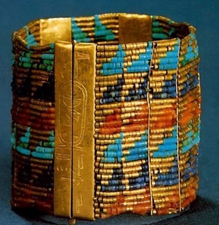 Для египетского стиля характерно сочетание зеленого, синего и белого цветов. Египетские украшения это браслеты и колье из металлических пластин с изображениями иероглифов и египетских богов.