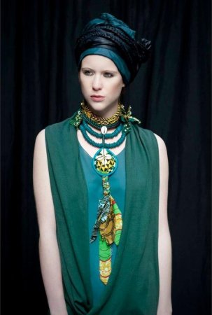 Африканские украшения сделаны из дерева, натуральных камней и кожи. Для стиля характерны простые формы в сочетании с яркими цветами.