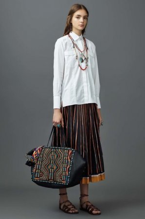 Этнические украшения также можно носить в сочетании с этническими аксессуарами и этнической одеждой. Например этнические серьги и сумка с кожаной бахромой дополнят блузу с вышивкой или пиджак с тесьмой.