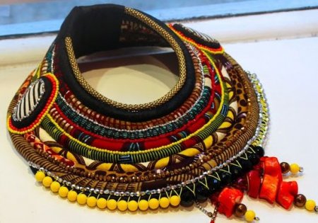 Колье и браслеты в африканском стиле изобилуют яркими деталями.
