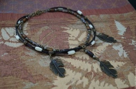 на которые нанизываются бусины и фурнитура. Кожу сочетают с перьями и костяными элементами. Из костей животных вырезают бусины, клыки и когти используют как самостоятельные элементы.
