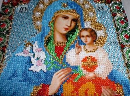Не обошел бисер стороной и религию. Вышивание с его помощью икон с древних времен считалось на Руси отдельным видом прикладного искусства. Принято считать, что в процессе создания такого полотна автор получает духовную подпитку. Полностью сконцентрированный на картине, он проникается историей героев, изображенных на ней, сопереживает им и выражает, таким образом, свои чувства.