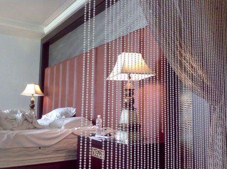 Если говорить о свете, то стоит упомянуть и о солнечных лучах. А где есть солнце, там есть и шторы. Занавески и шторы из бисера, хоть и требуют достаточно долгой и кропотливой работы для своего создания, но, зато, выглядят просто потрясающе! В зависимости от того, какой материал берется за основу, может достигаться совершенно разный эффект. Однотонные занавески, где бусины расположены достаточно далеко друг от друга, добавляют помещению лоска, солидности, в то же время плотные узоры прибавляют ему уюта и домашности.